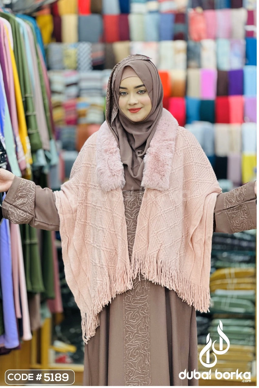Tags: Light Pink Winter Poncho, Beige Chess Box Poncho, Faux Fur Collar Poncho, Stylish Winter Poncho, Dubai Borka Winter Collection